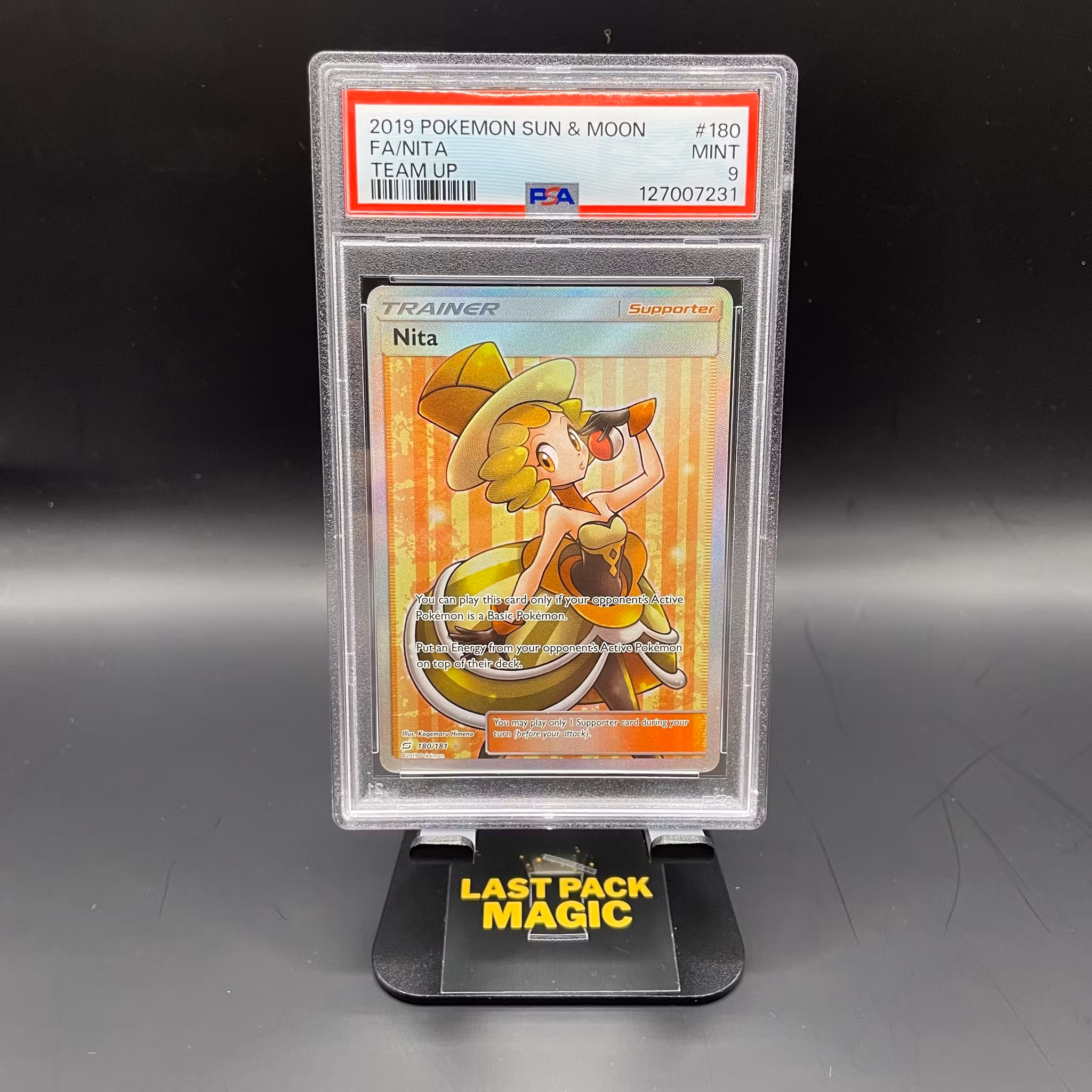 Ett graderat kort från PSA som fått näst högsta betyg, 9 av 10. Detta kort är från 2019 och ca 7 år gammalt.