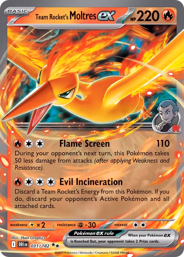 Team Rocket's Moltres 31/182 Double Rare - Destined Rivals Pokémonkort