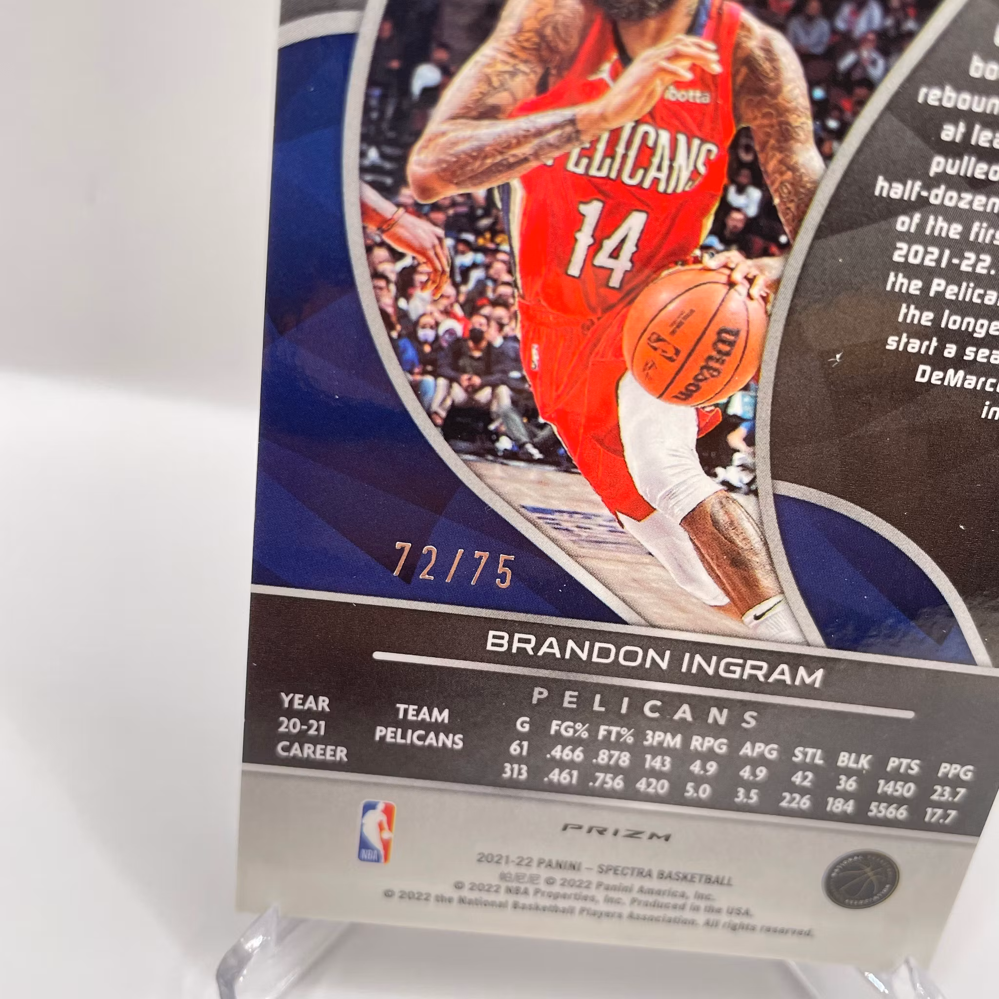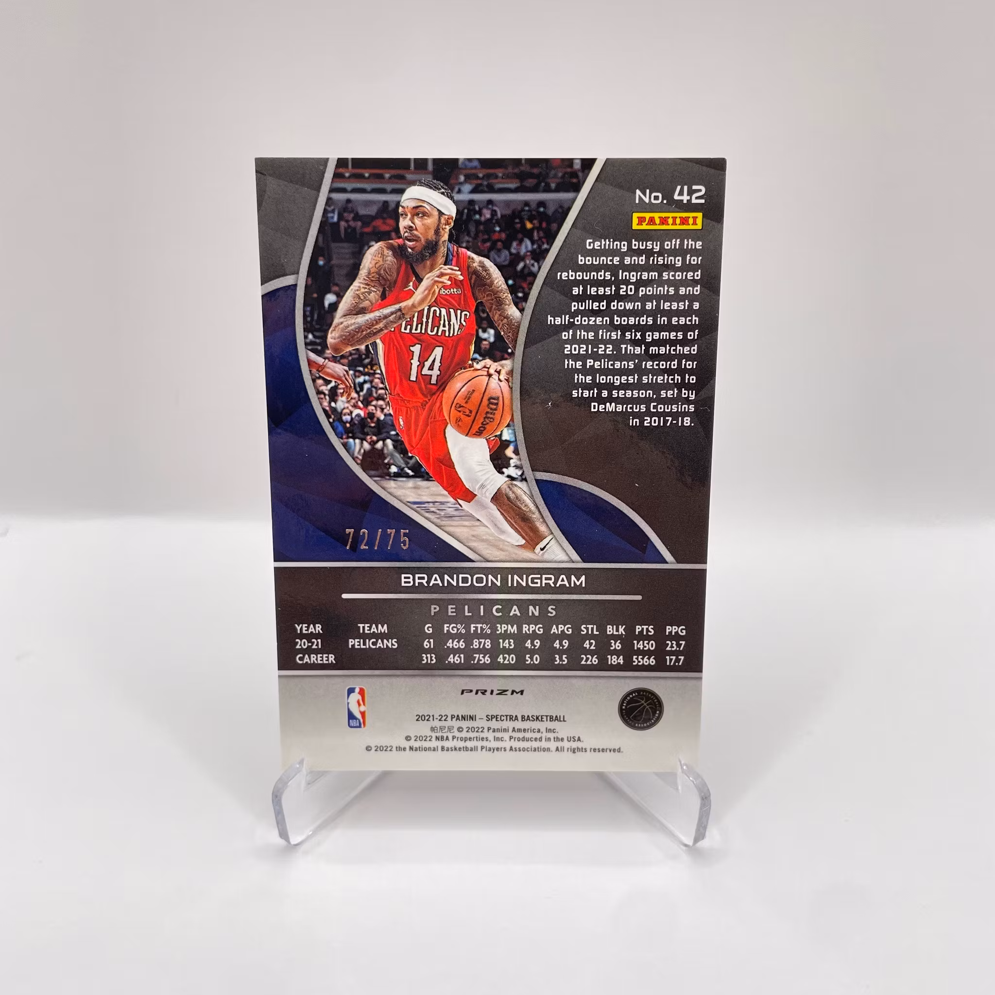 Brandon Ingram #42 - /75 Red/Yellow/Green Parallel Prizm - New Orleans Pelicans - Panini Spectra 2021-22 Tmall Basket kort