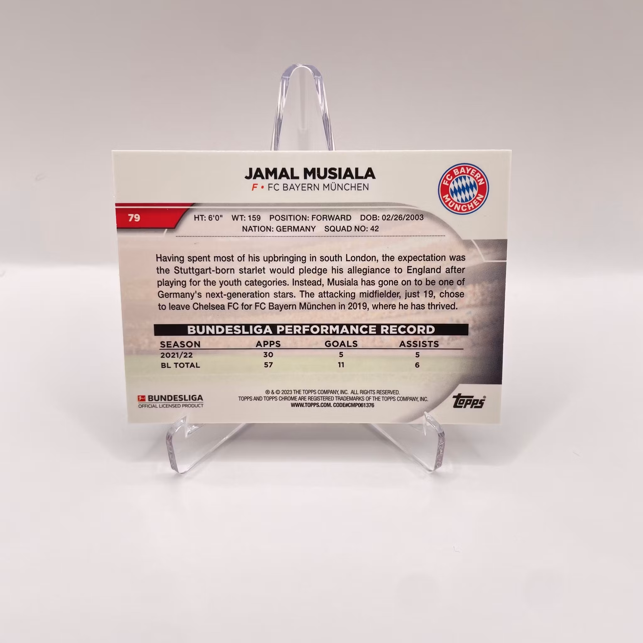 Jamal Musiala Base #79 - Bayern Munchen - Topps Chrome Bundesliga 2022/23 Fotbollskort