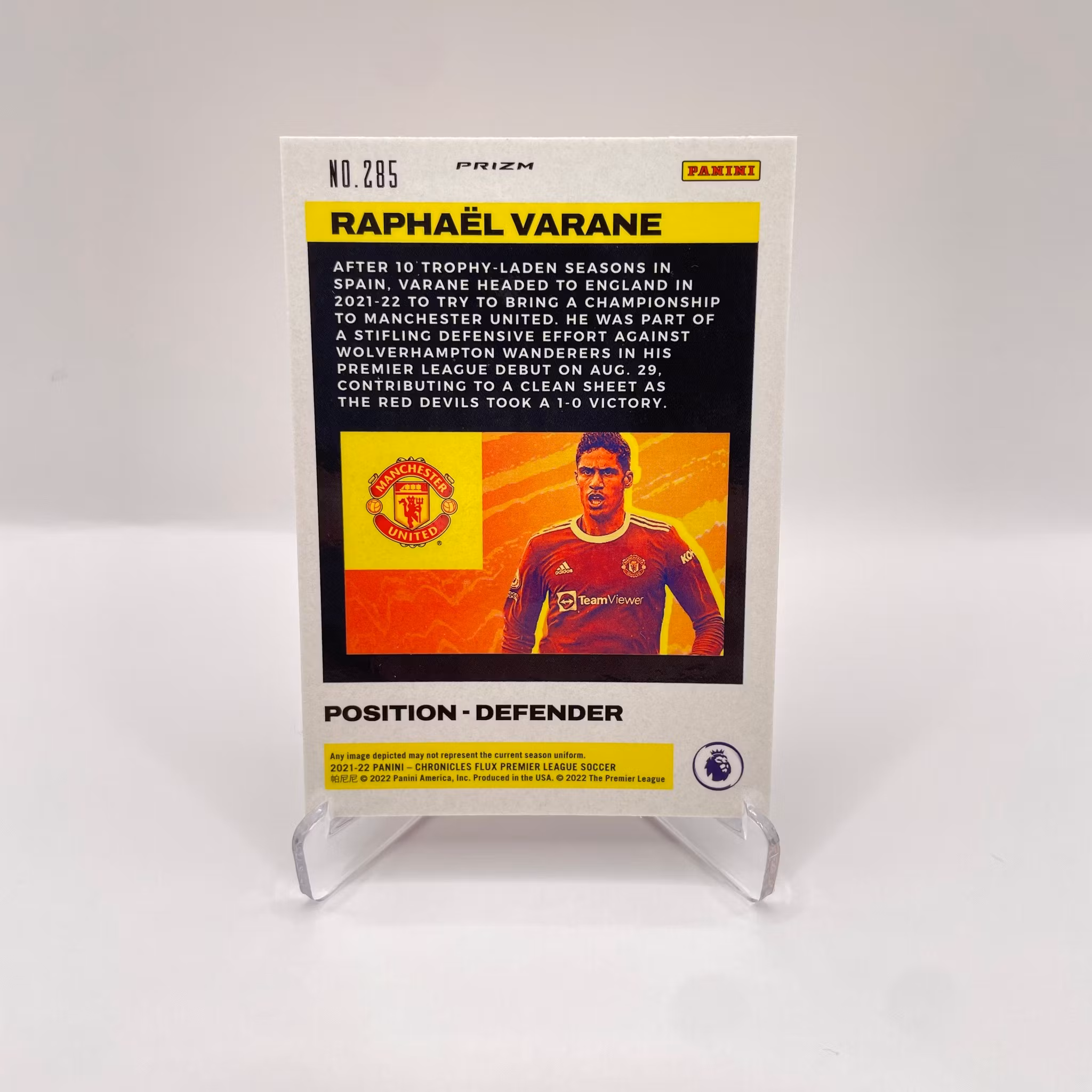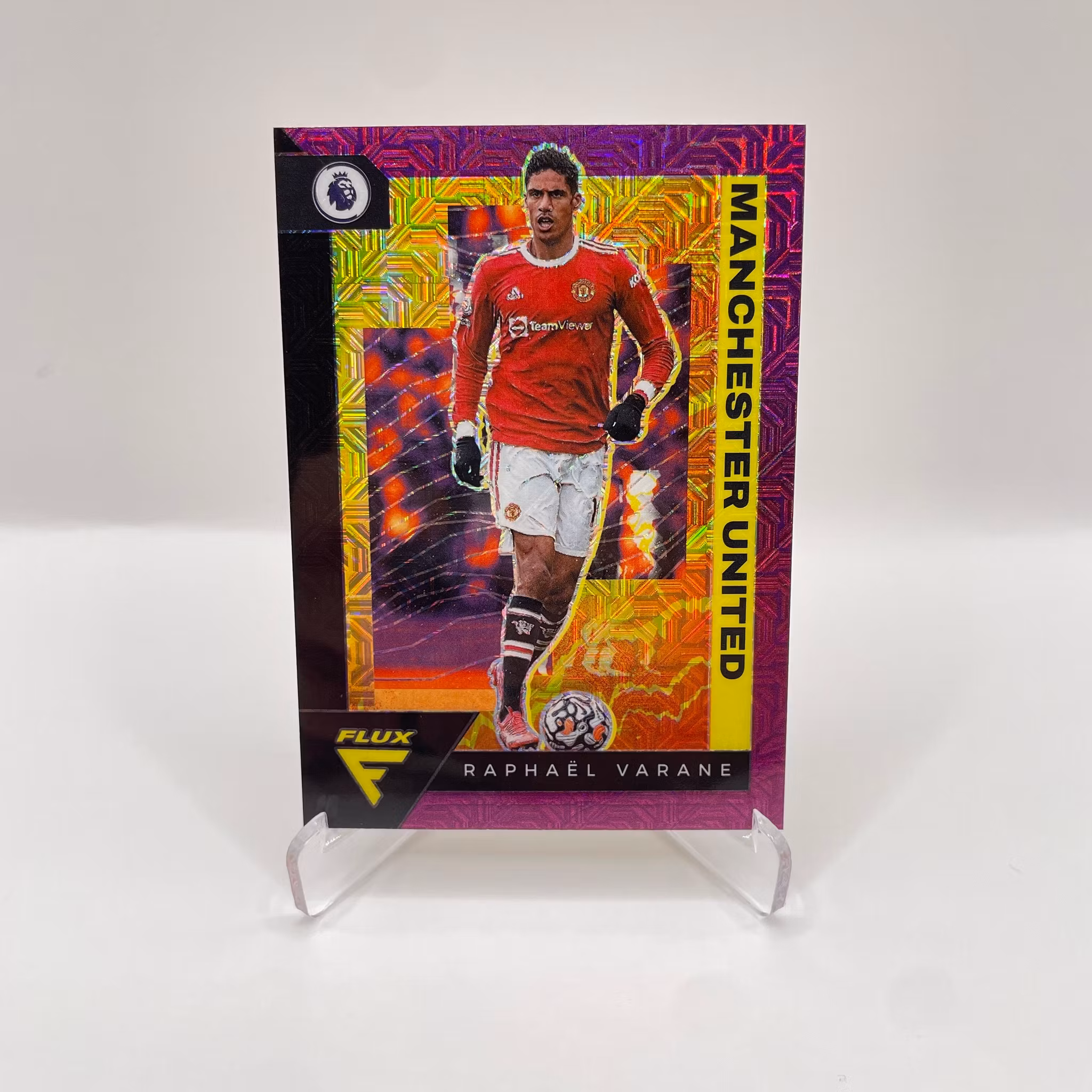 Raphael Varane Purple Mojo Prizm - Manchester United - Panini Chronicles Flux 2021-22 Fotbollskort