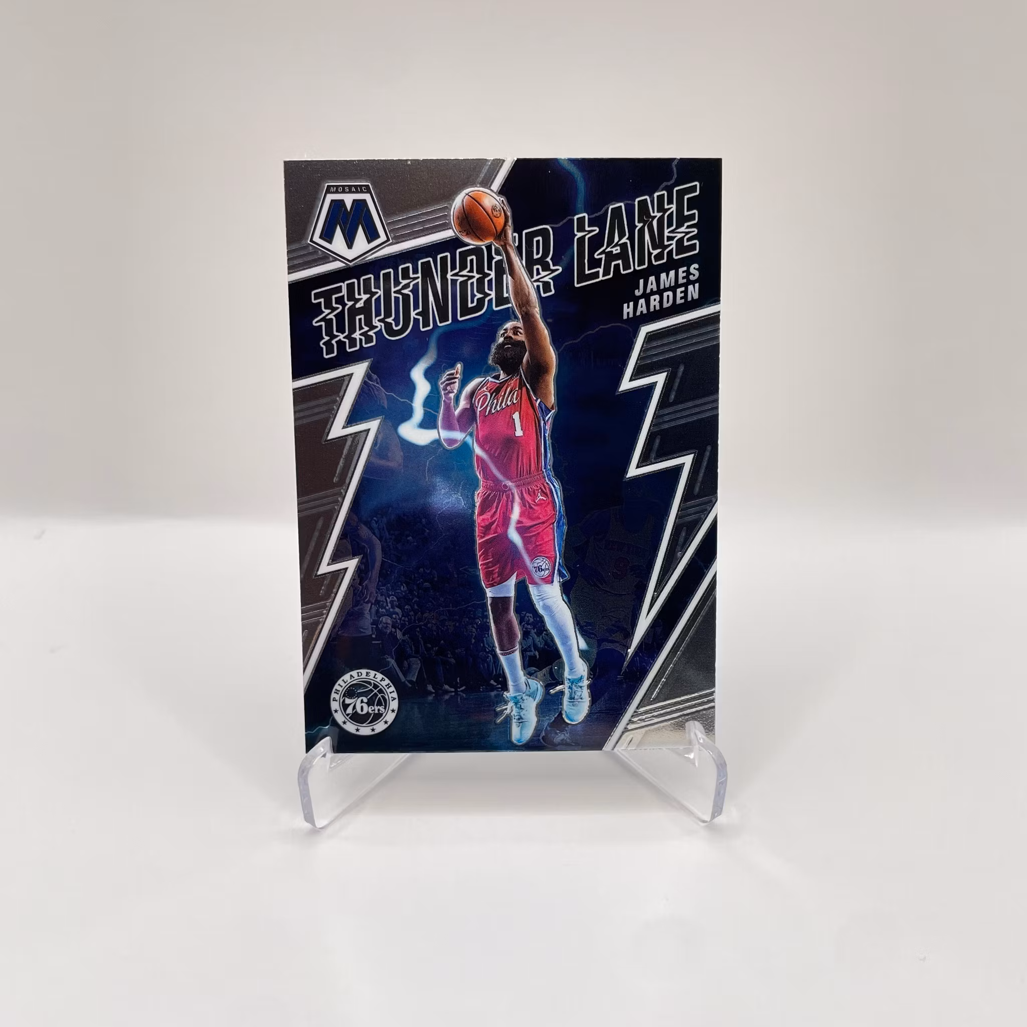 James Harden Thunderlanes Insert #5 - Philadelphia 76ers - Panini Mosaic 2021-22 Basket kort