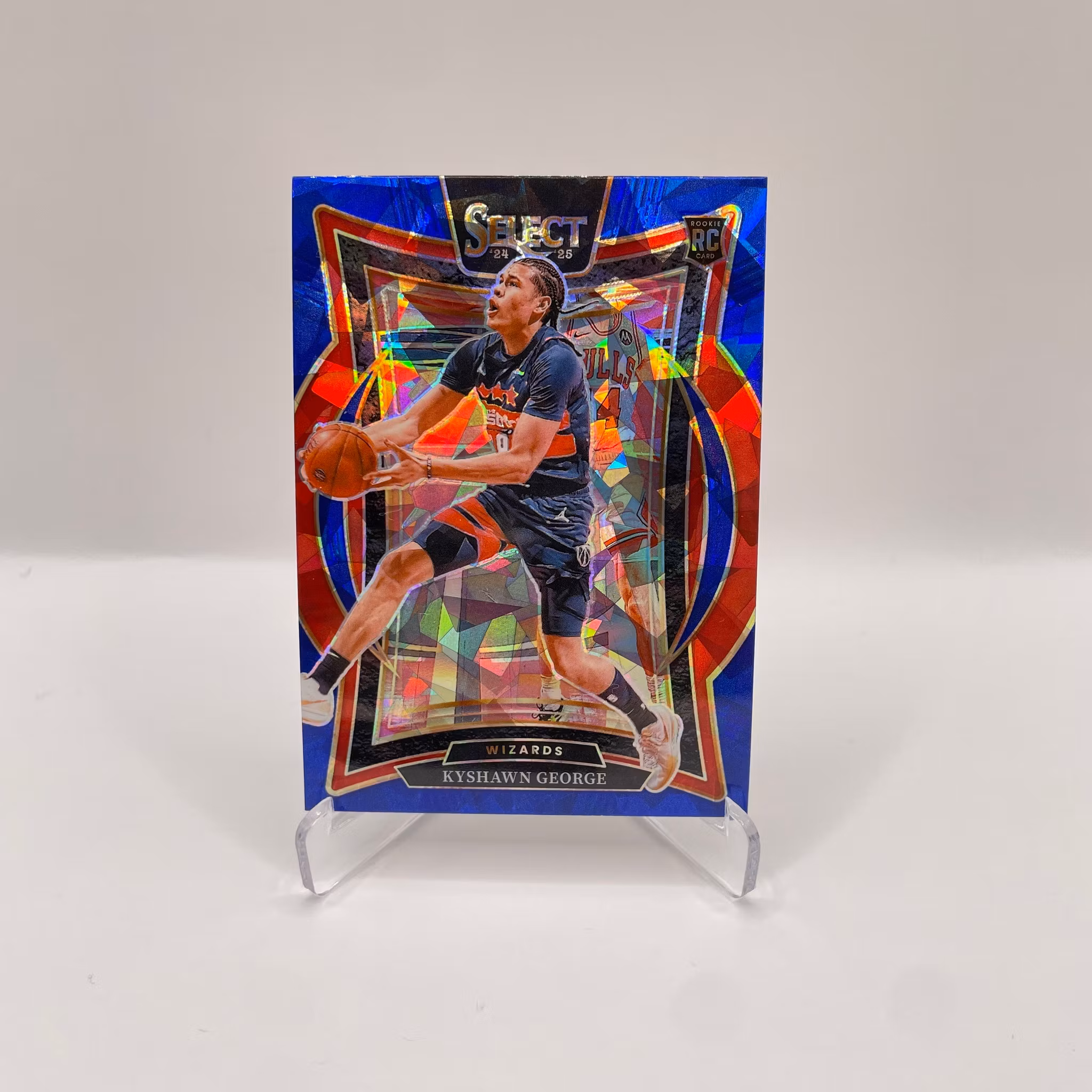 Kyshawn George Rookie Cracked Ice Blue Prizm #85 - Washington Wizards - Panini Select 2024-25 Basket kort