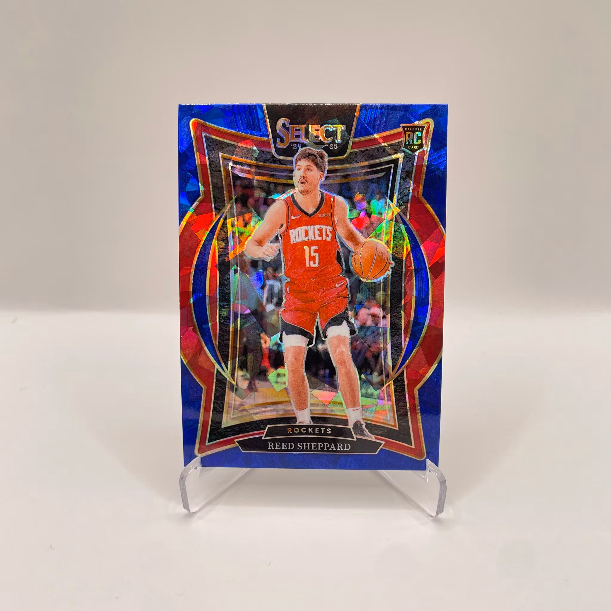 Reed Sheppard Rookie Cracked Ice Blue Prizm #68 - Houston Rockets - Panini Select 2024-25 Basket kort